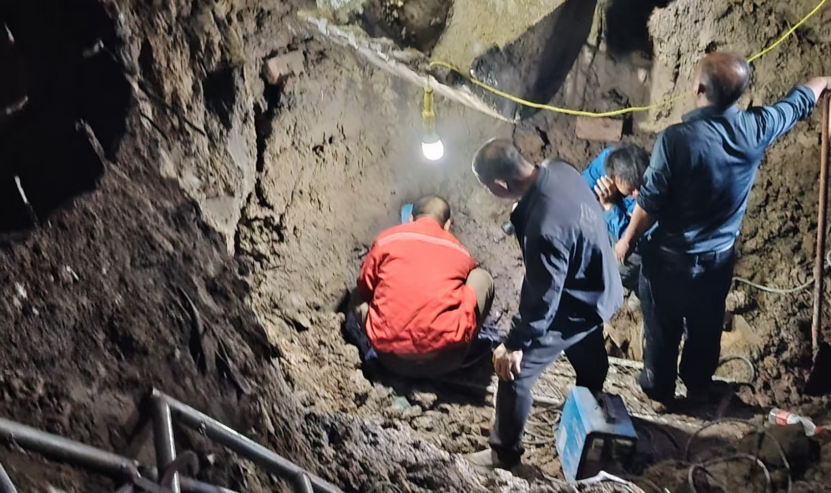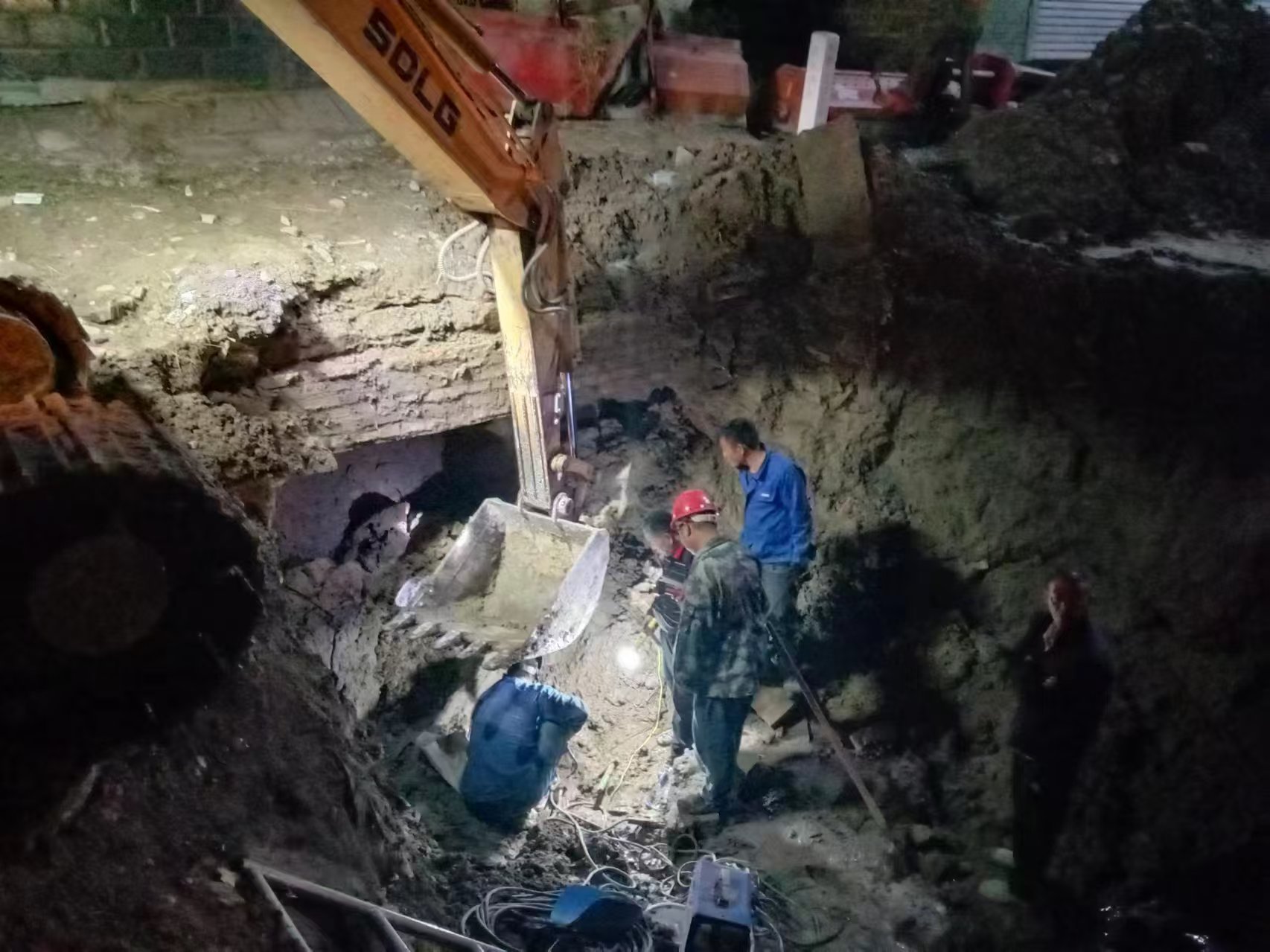 面對(duì)緊急情況,公司相關(guān)技術(shù)人員依據(jù)現(xiàn)場(chǎng)勘查結(jié)果,迅速制定了搶修方案。由于破裂管道處南側(cè)是村民自建的房屋,北側(cè)是村民出入的主要通道及高壓供電線路,西側(cè)有天然氣管線,施工難度較大。在地方村委及相關(guān)人員的大力支持配合下,施工隊(duì)伍采取必要的安全防護(hù)措施后,搶修工作全面展開。