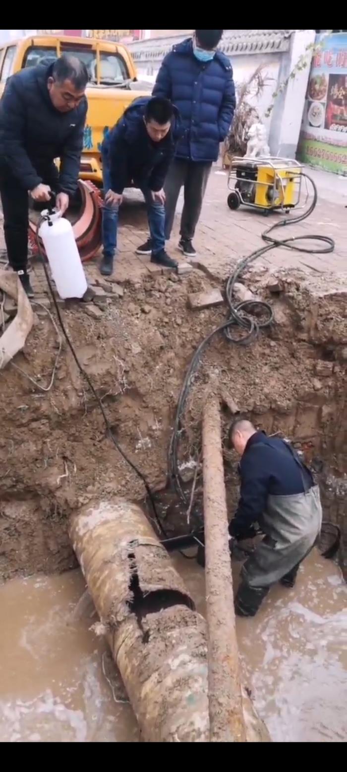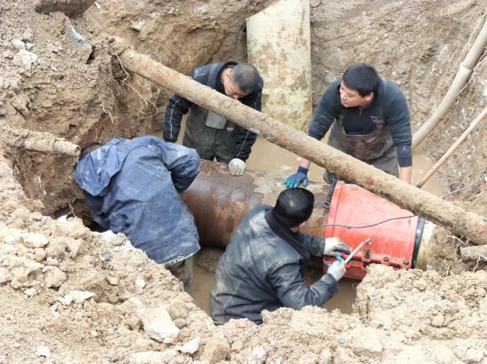 搶修人員趕到現(xiàn)場后,隨即進(jìn)行勘查,確定了漏水管道位置后,立即制定搶修方案。受爆管影響,容金國際小區(qū)、文化展覽館、胡村社區(qū)、頤和明珠等小區(qū)供水壓力將有明顯波動。在工程機(jī)械挖開道路后,根據(jù)現(xiàn)場管道的破損情況,決定采取斷管更換新管的方式進(jìn)行搶修來恢復(fù)破損的管線。為加快搶修進(jìn)度,盡早恢復(fù)供水,搶修人員不畏艱難,面對各種不利影響,迎著刺骨的寒風(fēng)通宵達(dá)旦施工作業(yè)。21日上午10點(diǎn)30分,經(jīng)過12個小時的連夜奮戰(zhàn),順利完成了供水管道搶修工作,全面恢復(fù)了施工影響區(qū)域供水。在管道搶修過程中,隊(duì)員們都沒有顧得上吃上一口熱飯,餓了啃面包,渴了喝礦泉水,一刻也不停歇?!坝肋h(yuǎn)在路上”這幾個字是對供水人工作的完美詮釋,不怕臟、不怕苦、不怕累是對他們工作態(tài)度的真實(shí)寫照。