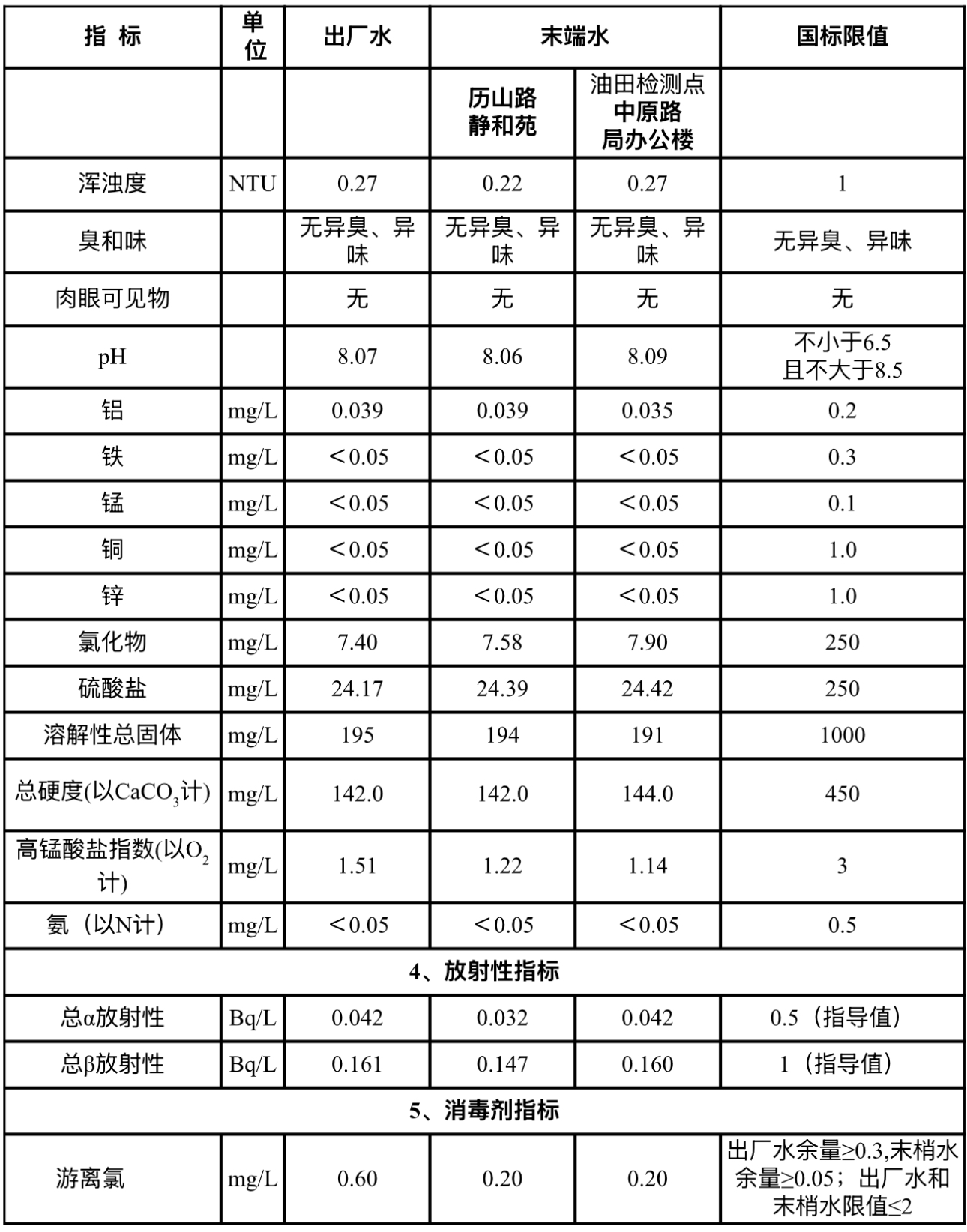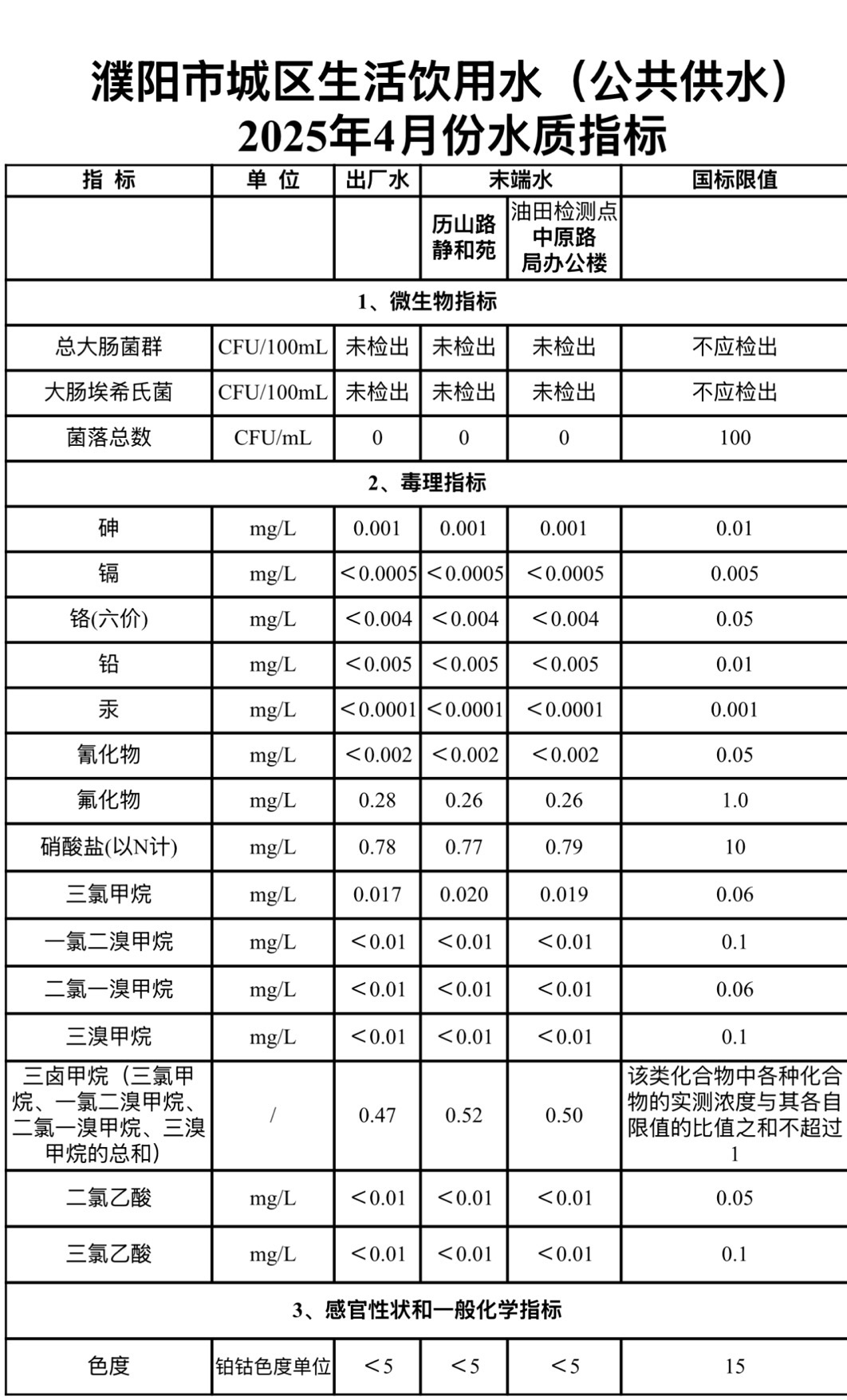 2025年4月份水質(zhì)指標(biāo)