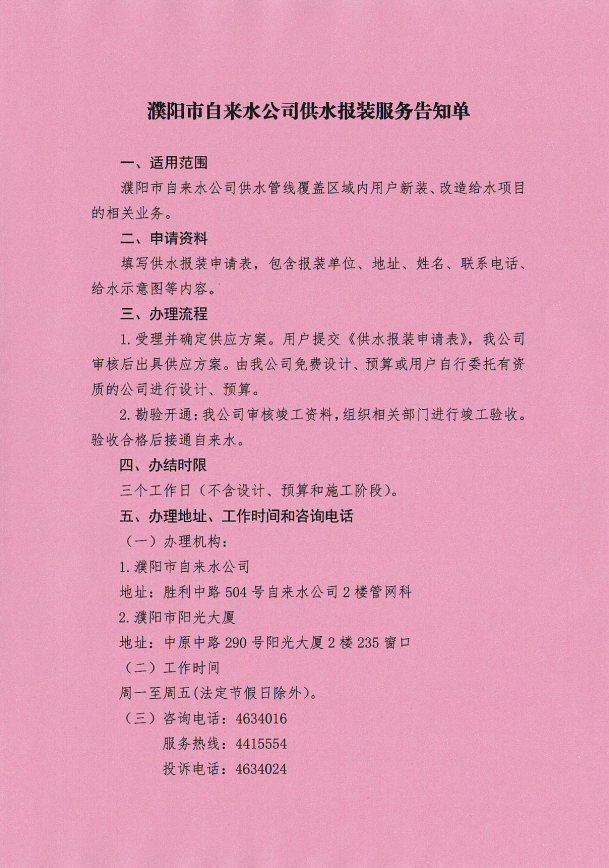 公司地址:濮陽市勝利中路504號 聯(lián)系我們 聯(lián)系電話:0393-4614478 版權所有:濮陽市自來水有限公司 icp備案號: 豫ICP備16041256號-2