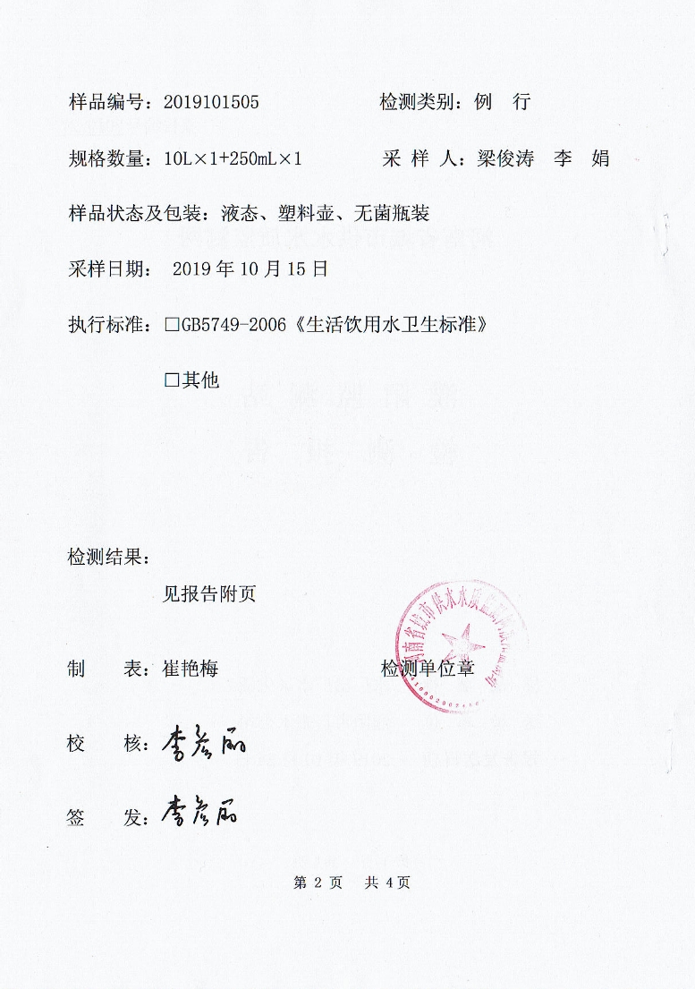 【水質(zhì)檢測(cè)報(bào)告】濮陽(yáng)監(jiān)測(cè)站檢測(cè)報(bào)告2019101505