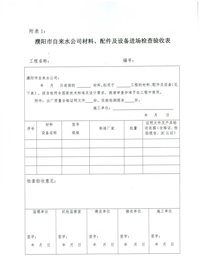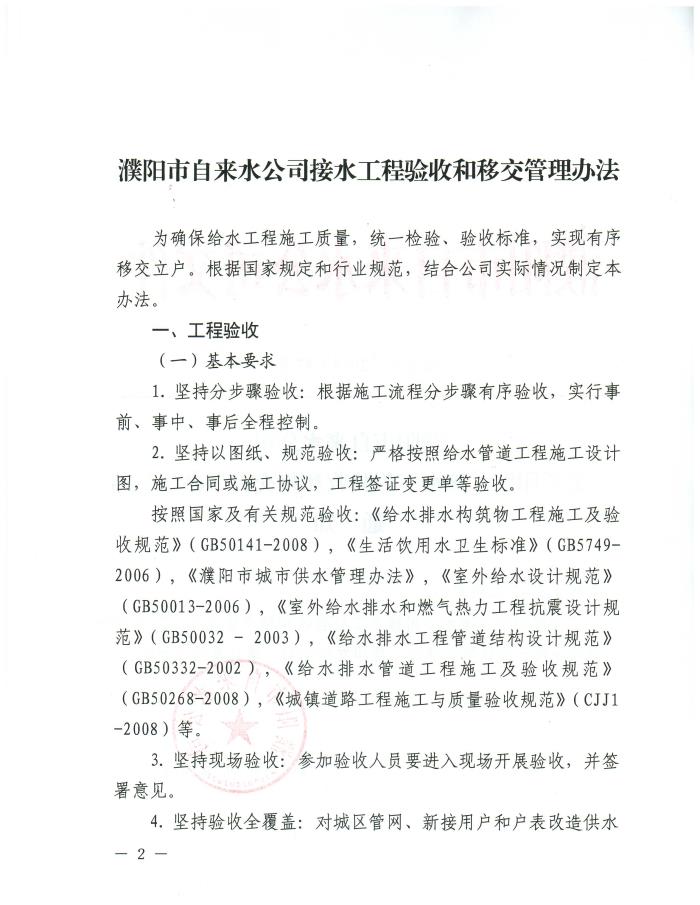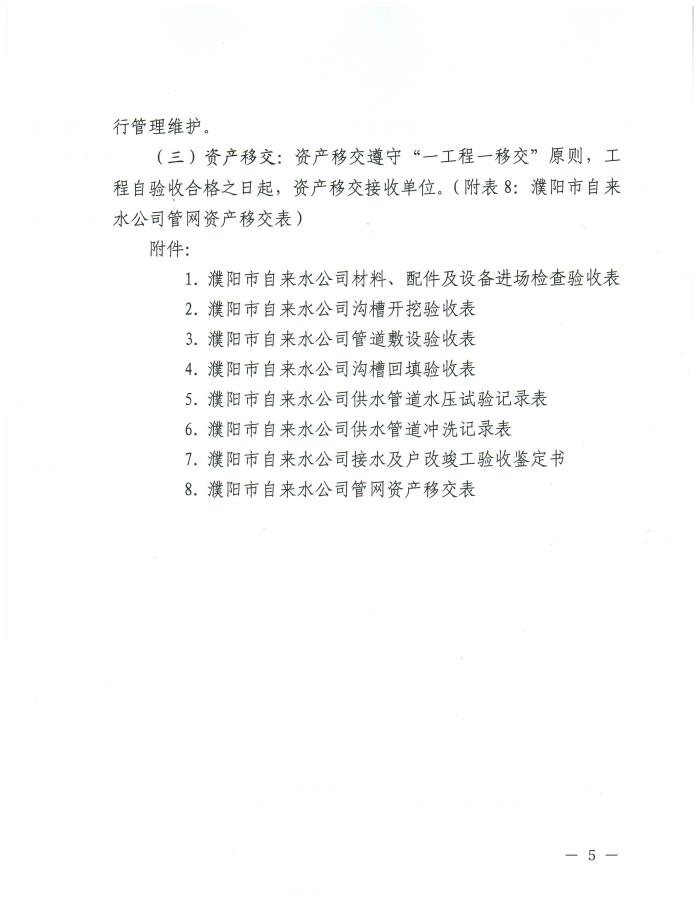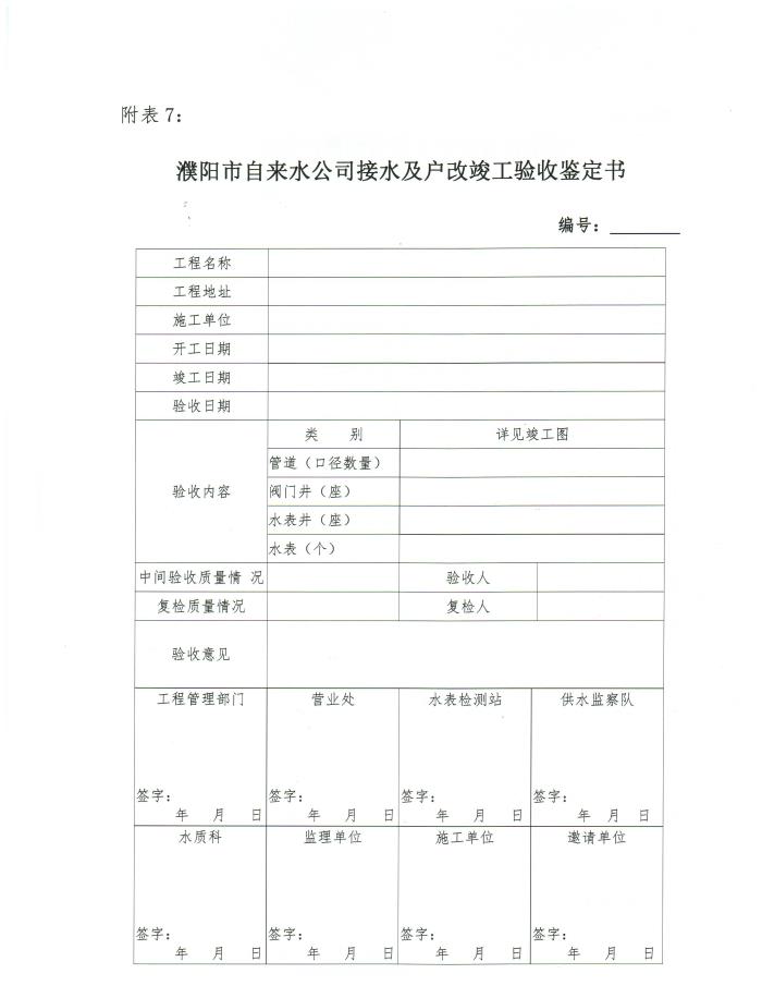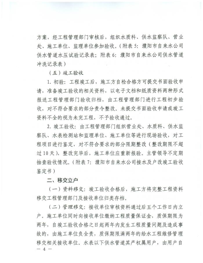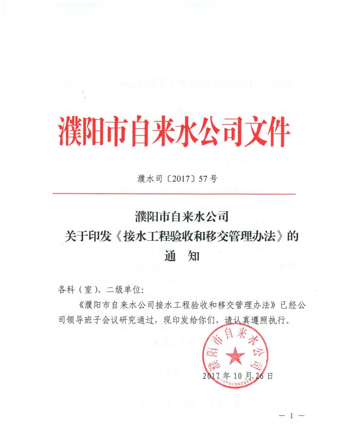 濮陽市自來水公司接水工程驗收和移交管理辦法